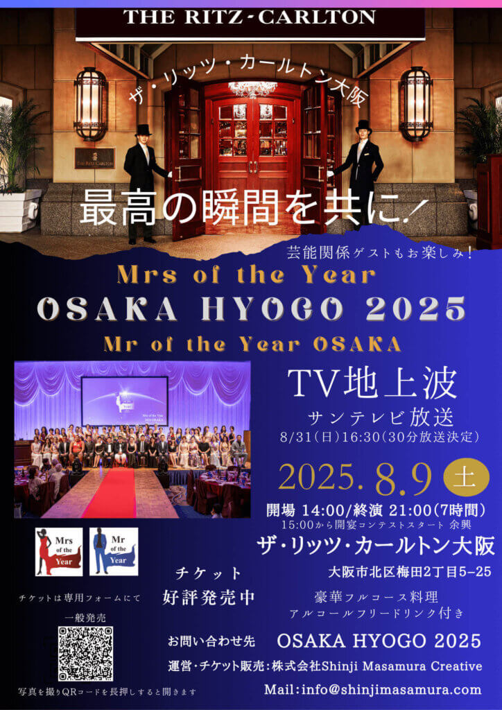 2025年8月9日、ザ・リッツ・カールトン大阪にて開催された 「Mrs&Mr of the Year OSAKA HYOGO 2025」 に審査員として参加させていただきました。